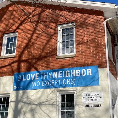 Our Meetinghouse proudly features FCNL's #LoveThyNeighbor banner.
