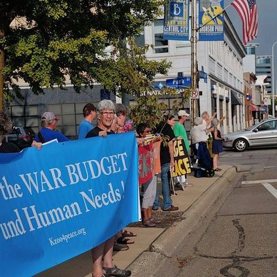 KNOW demonstrates in downtown Kalamazoo, including Meeting members. Source: kzooforpeace.org